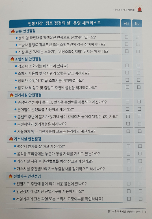 전통시장 '점포점검의 날' 운영 안내 페이지 정보 작성자 119 작성일20-12-11 15:38 조회1,550회 댓글0건 관련링크 이전글 다음글 목록 본문 매월 2주차 수요일은 전통시장 ' 점포 점검의 날' 로 운영됩니다. 시장 상인 여러분들께서는 안전점검 체크리스트를 활용하여 점포 자율점검을 실시하시기 바랍니다. 댓글목록 등록된 댓글이 없습니다. 이전글 다음글 목록