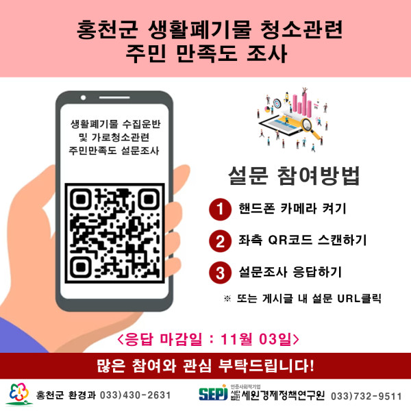 쓰레기 청소 및 수거 관련되어 설문조사를 부탁드립니다.