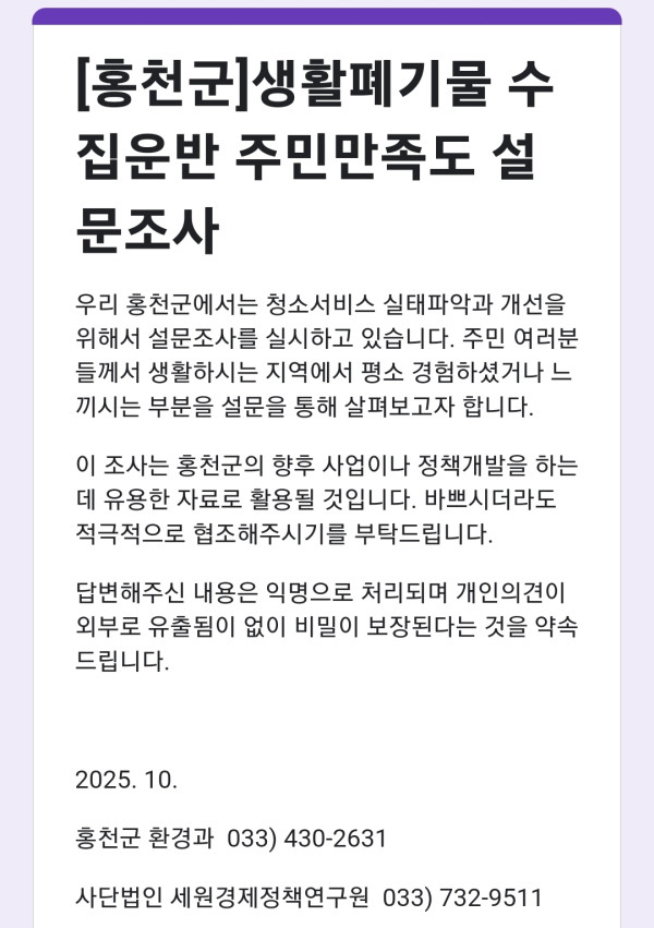 쓰레기 청소 및 수거 관련되어 설문조사_~20251103