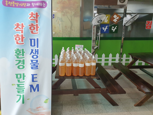 공급받은 EM천연주방세제는 상인회장 점포옆에 비치해 놓았습니다.
